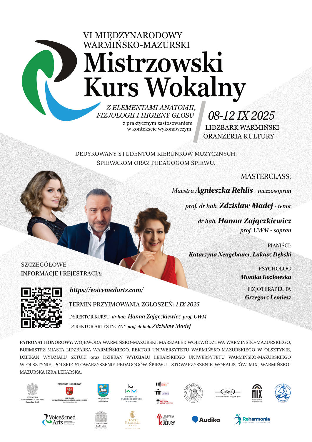 Podczas Kursu przewidziany jest Koncert Arii operowych i pieśni w Oranżerii Kultury, 11 września 2025 r., godz. 18.00.